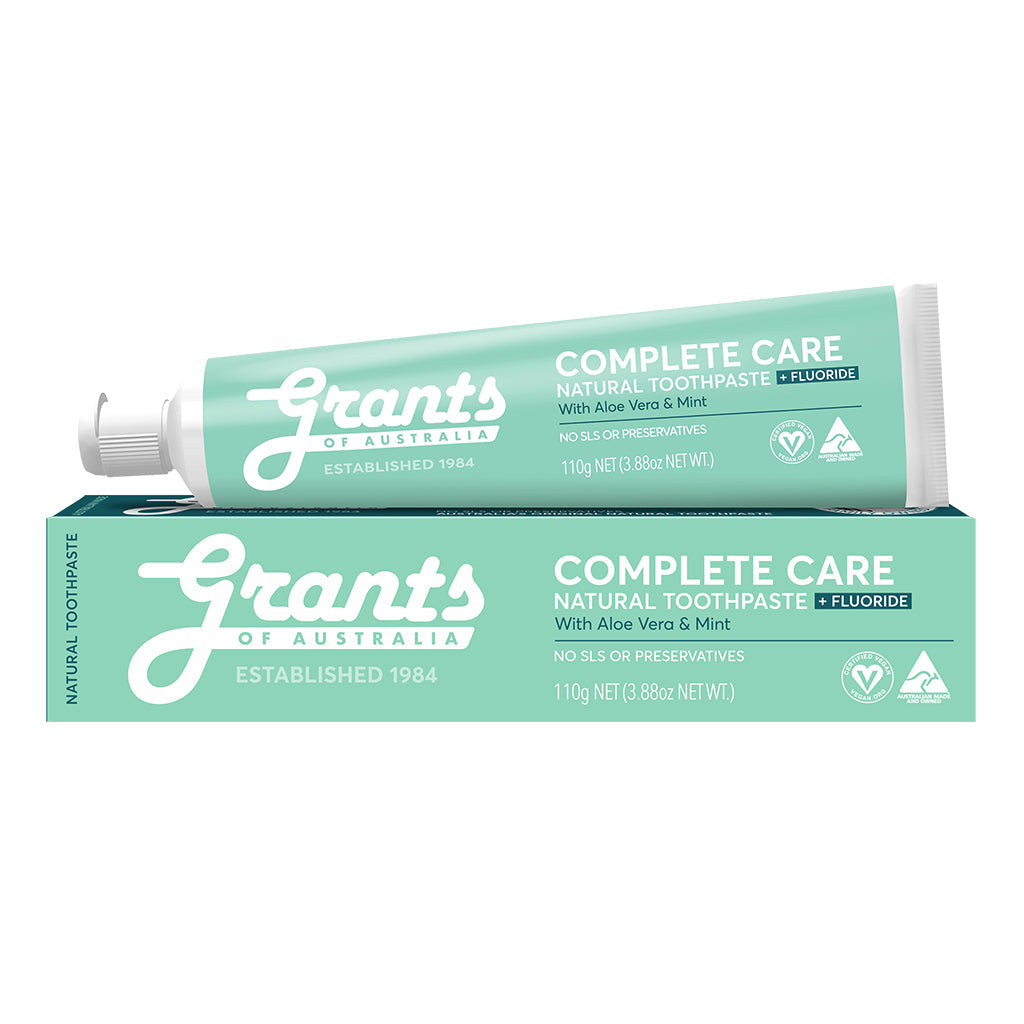 Grants Complete Care is a multi-benefit toothpaste that provides all day protection for your teeth and gums. With fluoride to help fight cavities and prevent tooth decay, Aloe Vera to soothe gums and a fresh spearmint flavour to freshen breath. Clean, soothe and protect your teeth while enjoying the benefits of natural herbs for gentle oral care. It’s everything you need in a toothpaste! Use day and night.