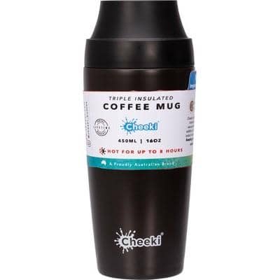 Cheeki's new 450ml (15.2oz) reusable coffee mug is built for the ultimate caffeine hit. Supersized, it is perfect for those large coffee's you need to take on-the-go. Featuring the brand new Copper Lock Technology and triple-wall vacuum insulation this coffee mug will keep your coffee perfectly hot for 8 hours or your iced coffee cold for 12 hours. It's on-trend, one of a kind advanced technology features a leak-proof pop-up lid enabling 360 degrees ease of drinking. Its soft rubber base provides extra strength and durability, making it perfect for prams, and most cup holders in the car and at the gym.
