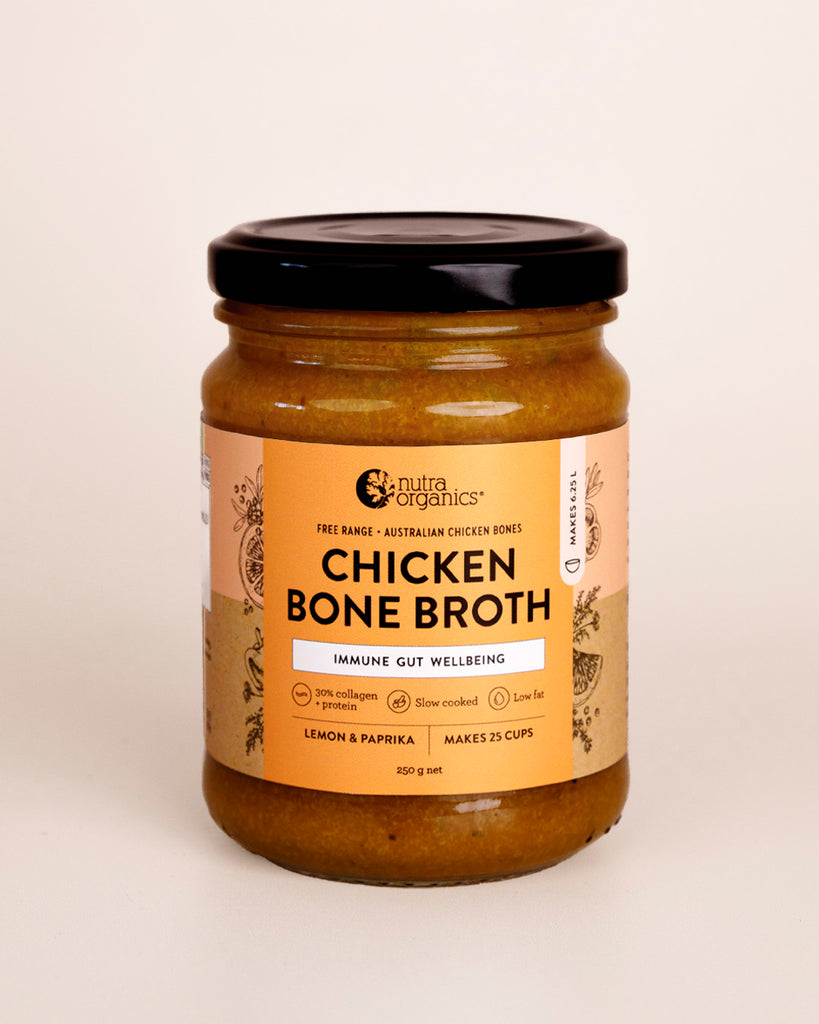 Nutra Organics new Chicken Bone Broth Concentrate is naturally nourishing with collagen protein and zinc to support immunity & gut wellbeing. Flavour packed and ready to enhance your cooking, or delicious on its own as a drink, our concentrates won't be beaten on flavour & nutritional benefits.