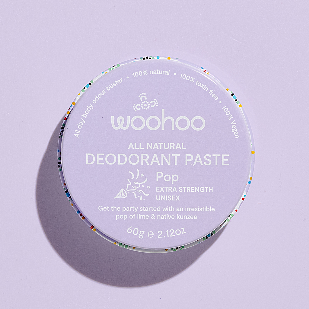 Meet Pop - our most delicious extra strength Woohoo natural deodorant scent yet! The crisp, fresh, summery lime and grapefruit combination is energising without being overpowering and provides long-lasting protection from body odour.