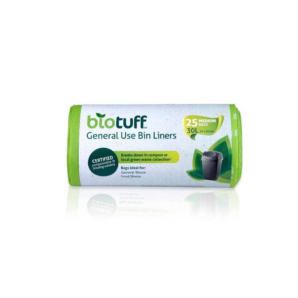Biotuff have created these domestic biodegradable and compostable rubbish bin bag liners! Manufactured using renewable resources, plant base thermoplastic corn starch resins - these compostable bags are an environmentally friendly alternative for sustainability.