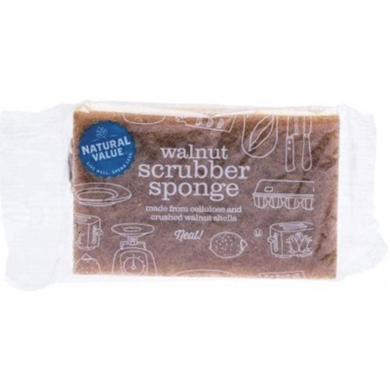 The Natural Value Walnut Scrubber Sponge is a great way to make your home more eco-friendly. It made from a mixture of plant-based cellulose, recycled fibres and ground walnut shells and is wrapped in clear polypropylene which is recyclable.