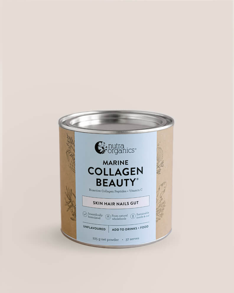 Marine Collagen Beauty contains premium upcycled Naticol® Marine Collagen, Vitamin C, Zinc, Silica and Fucoidan - all from pure wholefoods - to regenerate skin collagen and support healthy hair, nails and gut.