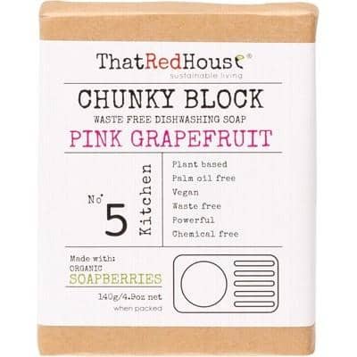 Made using That Red House's powerful Organic Soapberries and pure Pink Grapefruit Essential Oil, these CHUNKY BLOCKS are the perfect way to replace liquid dishwashing detergent, hand soap, and general cleaning soap.