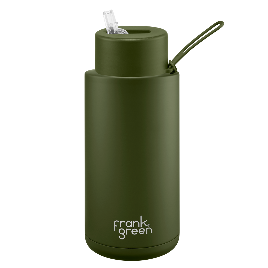 Frank Green - Stainless Steel Ceramic Reusable Bottle with Straw - Khaki (34oz)