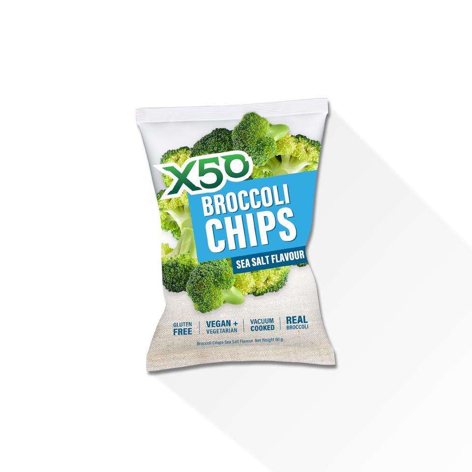 These X50 Broccoli chips are a healthier alternative to potato chips? Made with real broccoli florets, this crunchy treat is made with over 300 grams of broccoli, whilst also being lower in calories than the average bag of chips! gain the nutritional value of the X50 Broccoli Chips and satisfy your snack attack at the same time!