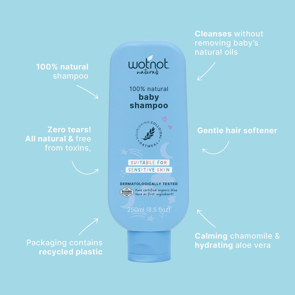 Approved for use on the most sensitive skin, our natural baby shampoo cleanses without removing baby’s natural oils.